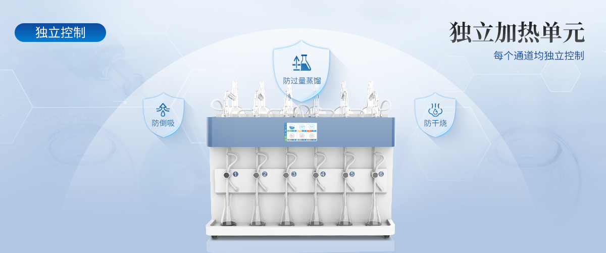 各級實驗室的前處理實驗過程中,蒸餾實驗是非常常見且又非常重要的一項前處理步驟。但傳統(tǒng)的蒸餾裝置由于加熱,冷凝,接收等裝置部分結(jié)構(gòu)獨立,操作繁瑣,效率較低,故障率高,蒸餾過程中加熱溫度不易控制,終點無法自動判斷停止,餾出液易倒吸,相應(yīng)帶來平行性差,回收率低等直接影響實驗結(jié)果的現(xiàn)象等各種弊端。