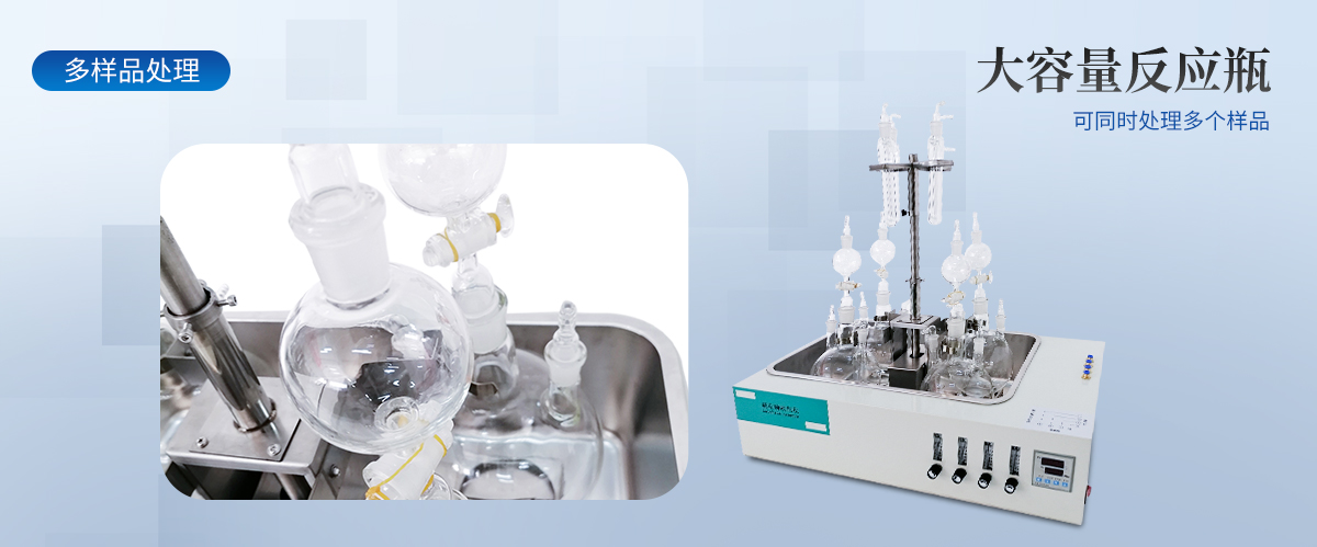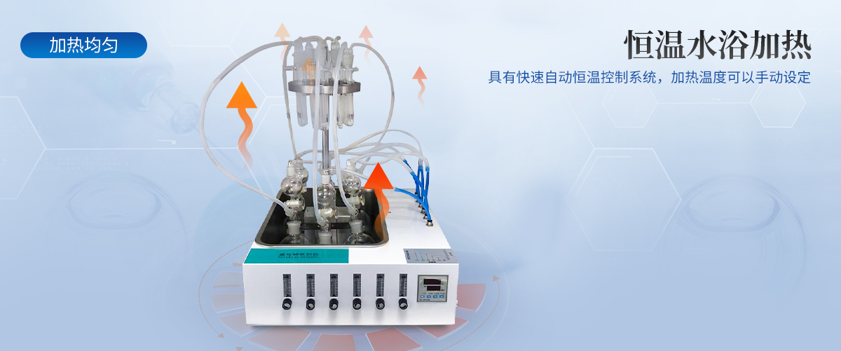 | 1.大容量反應瓶,可同時處理多個樣品。 | 2.鹽酸口、氣體進口、出口三口一體且相互獨立,操作會不干擾。 | 3.恒溫水浴加熱,具有快速自動恒溫控制系統(tǒng),加熱溫度可以手動設定。 | 4.由升降位置固定旋鈕調節(jié)樣品架及配氣系統(tǒng)的升降旋轉樣品架,正面安裝樣品,操作方便。 | 5.每個樣品的氮氣流量獨立控制調節(jié)或關閉,針閥氣體流量計準確控制和顯示氣體總消耗量。 |