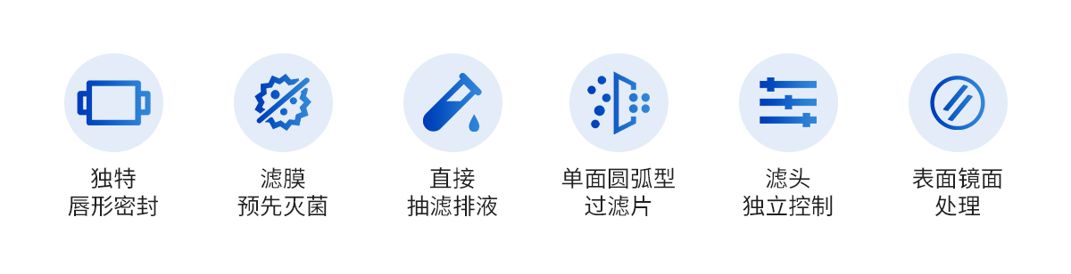 | 1.過濾杯采用獨特的唇形密封設計,不使用夾鉗和 O 型圈,確保無泄 漏操作和均勻的微生物回收率 2.濾膜預先滅菌,即拆即用,可將主要污染物源降到**,提高檢測可靠性 3..直接抽濾排液,抽濾瓶,安裝使用方便 4.**真空泵,效率更高 5.小巧的機身,減少對操作臺面積的占用 6.防水開關 簡潔方便 7.六聯(lián)過濾頭設計,可同時抽濾,提高工作效率,每個濾頭也可獨立控制,方便操作人員靈活使用 8.過濾頭可快速拆裝,能單獨濕熱滅菌 9.過濾頭可以火焰快速滅菌,方便連續(xù)實驗操作 10.采用單面圓弧型過濾片,方便更換 11.儀器表面經(jīng)鏡面處理,便于清潔和消毒 12.濾杯采用可重復使用材料設計,經(jīng)久耐用,節(jié)省成本,操作方便 |