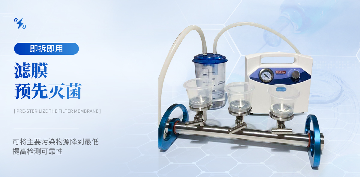 微生物限度檢測系統(tǒng)采用不銹鋼金屬材料制成,配有真空泵,外接抽濾瓶