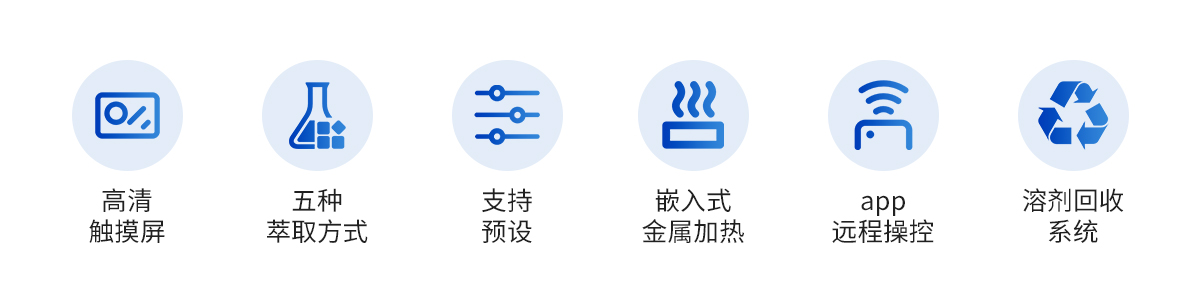 | ?全部有機(jī)溶劑均可使用,包括苯類、微類、酮類 等,滿足各種有機(jī)溶劑的使用條件 | ?采用全自動(dòng)標(biāo)準(zhǔn)索氏萃取,全通道為玻璃與四氟材質(zhì),有效避免雜質(zhì)的引入,準(zhǔn)確性高 | ?可以app遠(yuǎn)程操作控制,實(shí)現(xiàn)遠(yuǎn)程通訊功能,方便客戶實(shí)時(shí)查看實(shí)驗(yàn)允許情況 | ?采用一鍵開(kāi)始與暫停操作,實(shí)驗(yàn)過(guò)程掌控靈活 | ?外置壁掛型控制器,方便靈活,簡(jiǎn)單快捷 | ?采用七寸大液晶觸摸屏控制,顯示屏具有折疊功能,不用時(shí)可以收起不占用空間 | ?五種萃取方式,滿足不同客戶萃取需求 | ?預(yù)設(shè)常用試劑選項(xiàng),高頻次實(shí)驗(yàn)一鍵輕松搞定 | ?整體嵌入式金屬加熱,升溫更快,效率更高 | ?進(jìn)出水路溫度監(jiān)控與流量控制,配合冷凝水有無(wú)實(shí)時(shí)監(jiān)測(cè),保證有機(jī)蒸氣冷凝回流無(wú)泄漏的效果下,節(jié)約水資源 | ?具有高-效的溶劑回收系統(tǒng),有效減少試劑的浪費(fèi) |